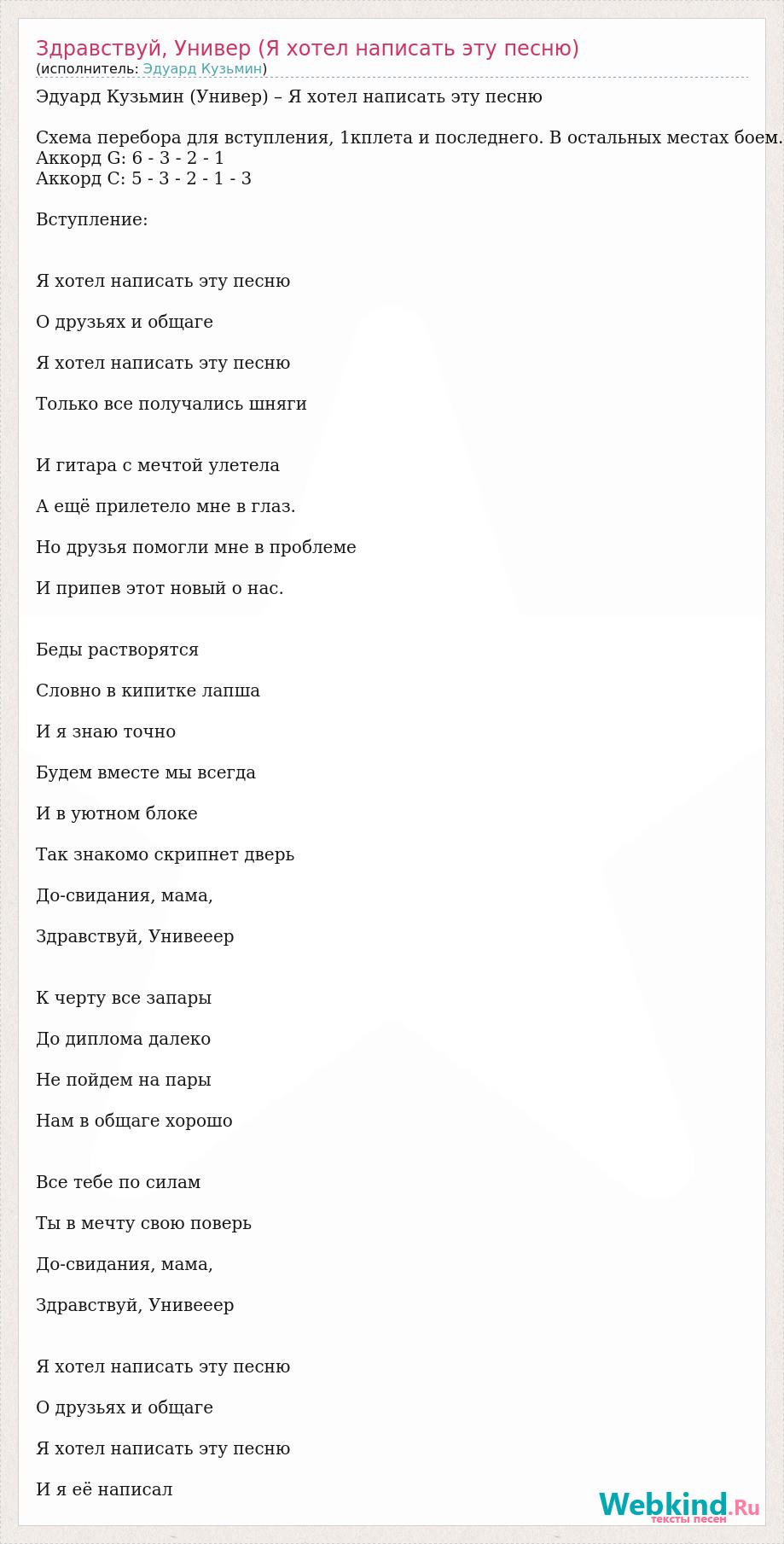 Эдуард Кузьмин (Универ) – Я хотел написать эту песню