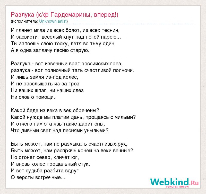 А как ты думаешь, о чем песня "Разлука (к/ф Гардемарины, вперед!)" ?