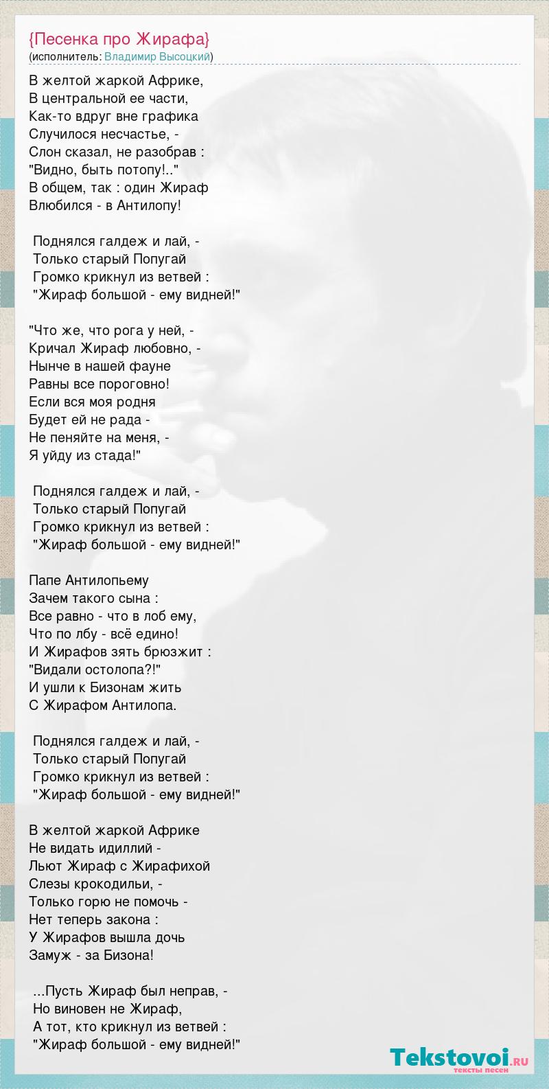 А как ты думаешь, о чем песня "{Песенка про Жирафа}" ?