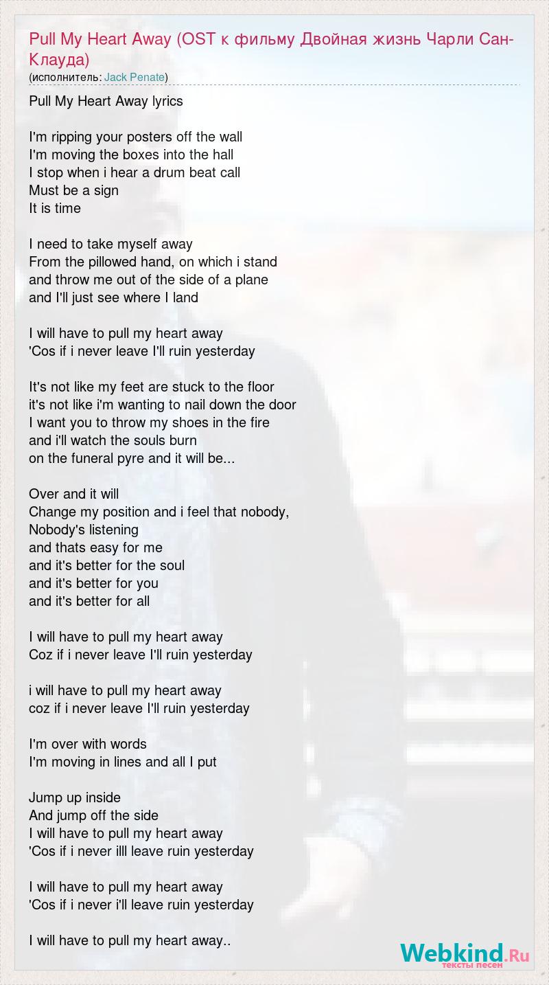 А как ты думаешь, о чем песня "Pull My Heart Away (OST к фильму Двойная жизнь Чарли Сан-Клауда)" ?
