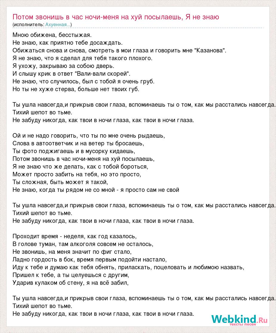 Потом звонишь в час ночи-меня на хуй посылаешь, Я не знаю что же делать, как
