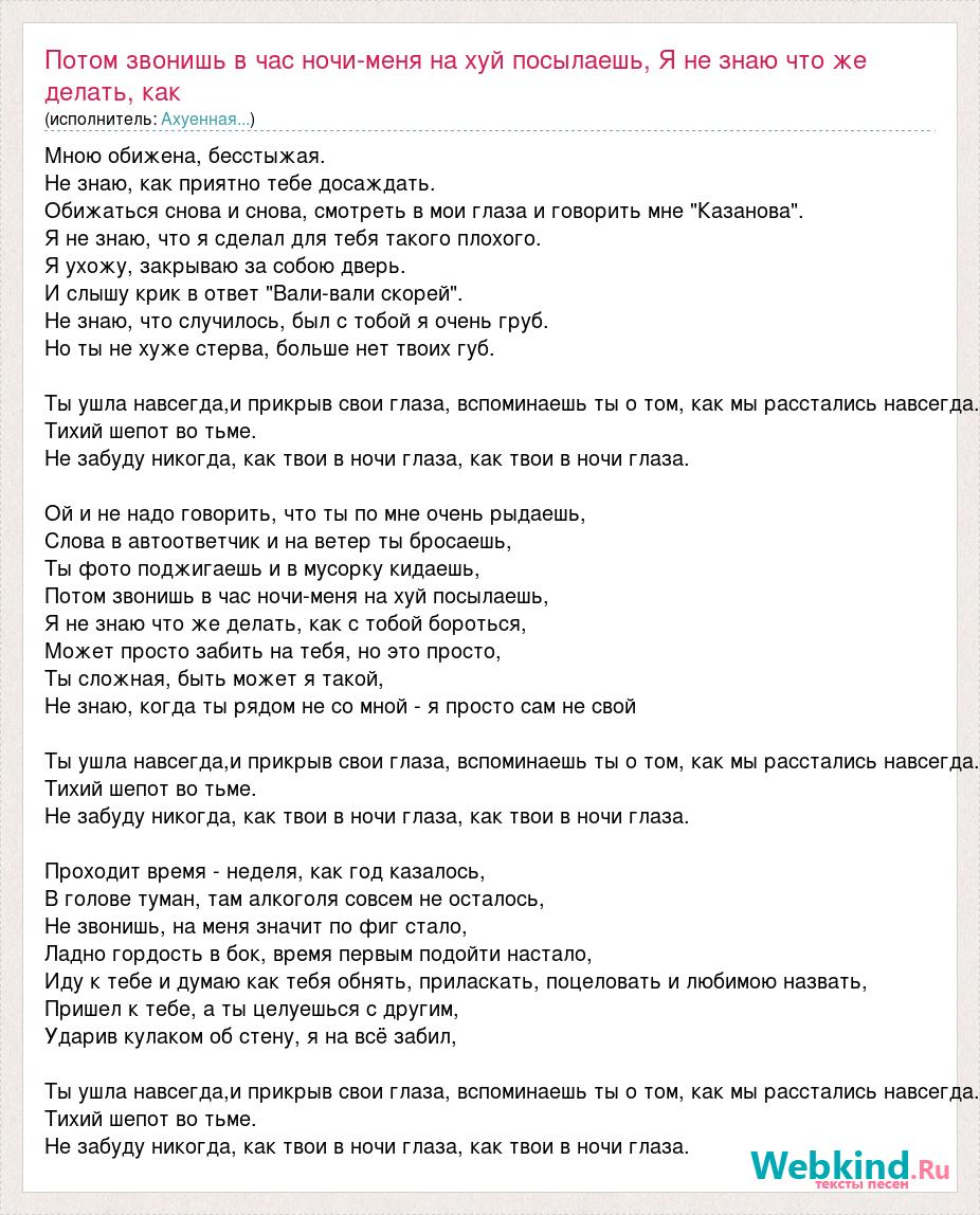 Главная→Исполнители→Ахуенная...→Потом звонишь в час ночи-меня на хуй посылаешь, Я не знаю что же делать, как