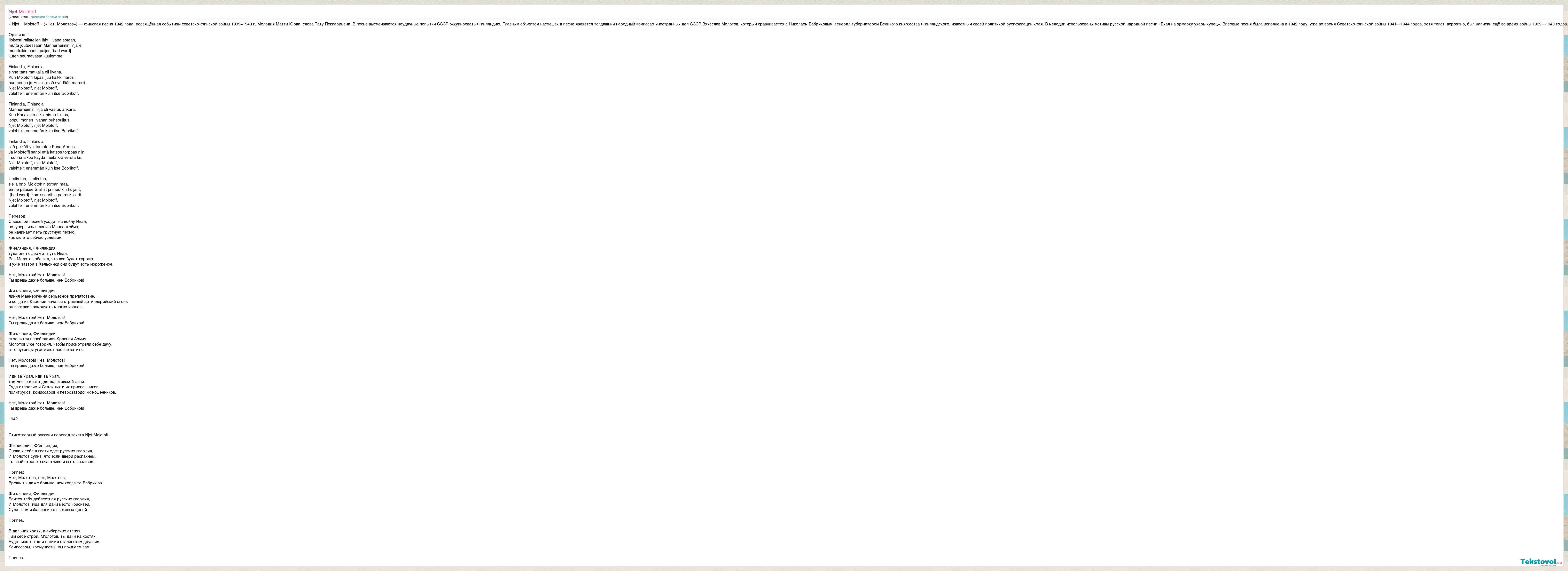 А как ты думаешь, о чем песня "Njet Molotoff" ?