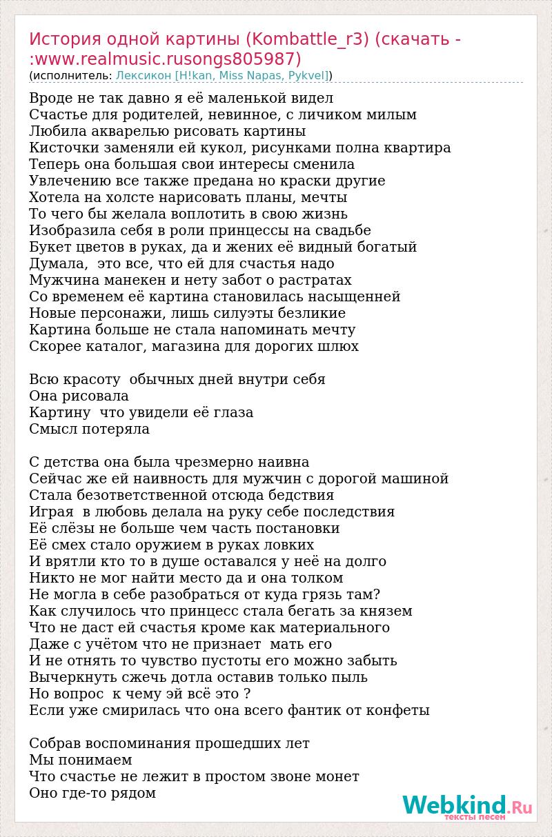 Главная→Исполнители→Лексикон [H!kan, Miss Napas, Pykvel]→История одной картины (Kombattle_r3) (скачать - :www.realmusic.rusongs8