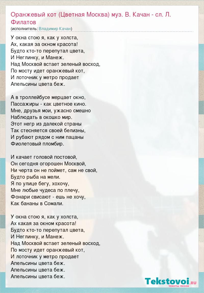 Оранжевый кот (Цветная Москва) муз. В. Качан - сл. Л. Филатов