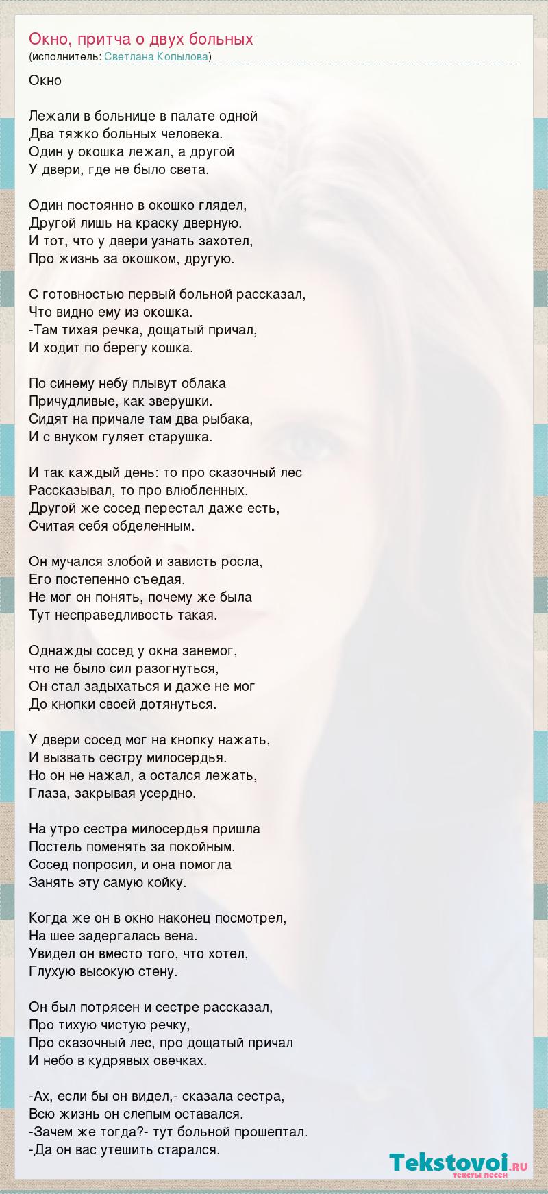 А как ты думаешь, о чем песня "Окно, притча о двух больных" ?