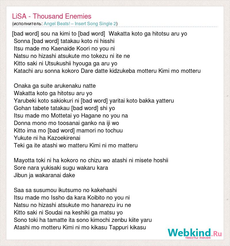 А как ты думаешь, о чем песня "LiSA - Thousand Enemies" ?