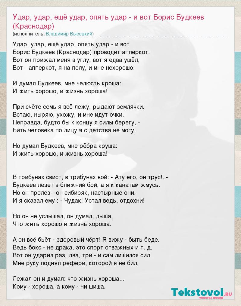 Главная→Исполнители→Владимир Высоцкий→Удар, удар, ещё удар, опять удар - и вот Борис Будкеев (Краснодар) проводит апп