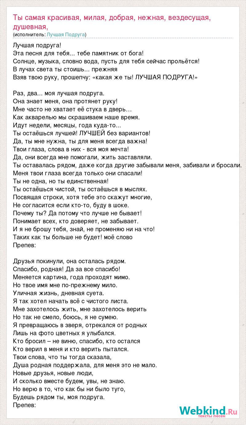 Главная→Исполнители→Лучшая Подруга→Ты самая красивая, милая, добрая, нежная, вездесущая, душевная, талантлив