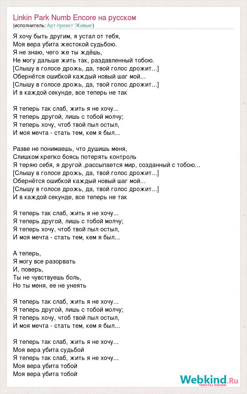 Linkin Park Numb Encore на русском