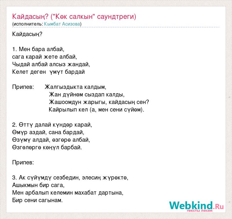 А как ты думаешь, о чем песня "Кайдасың? ("Көк салкын" саундтреги)" ?