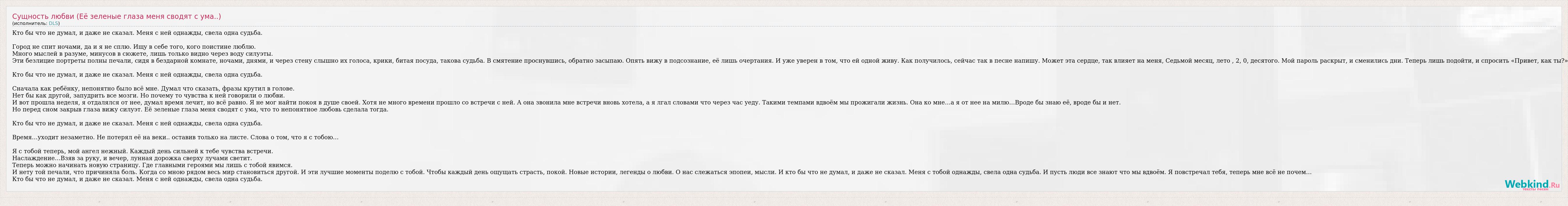 А как ты думаешь, о чем песня "Сущность любви (Её зеленые глаза меня сводят с ума..)" ?