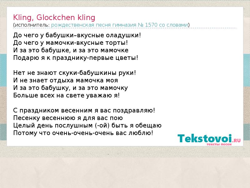 А как ты думаешь, о чем песня "Kling, Glockchen kling" ?