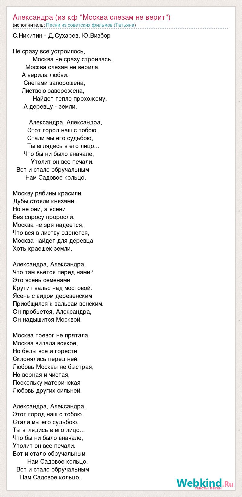 А как ты думаешь, о чем песня "Александра (из кф "Москва слезам не верит")" ?