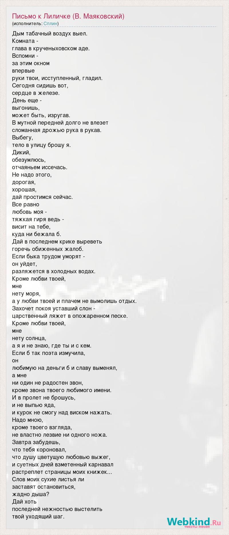 А как ты думаешь, о чем песня "Письмо к Лиличке (В. Маяковский)" ?