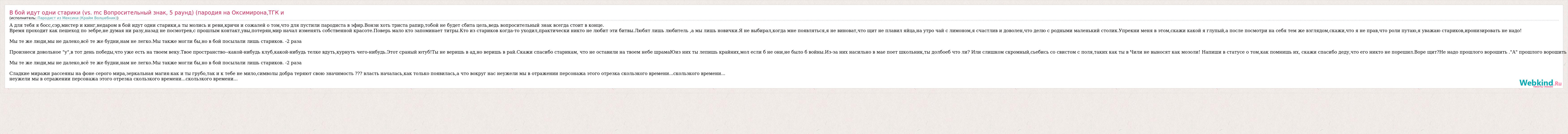 В бой идут одни старики (vs. mc Вопросительный знак, 5 раунд) (пародия на Оксим