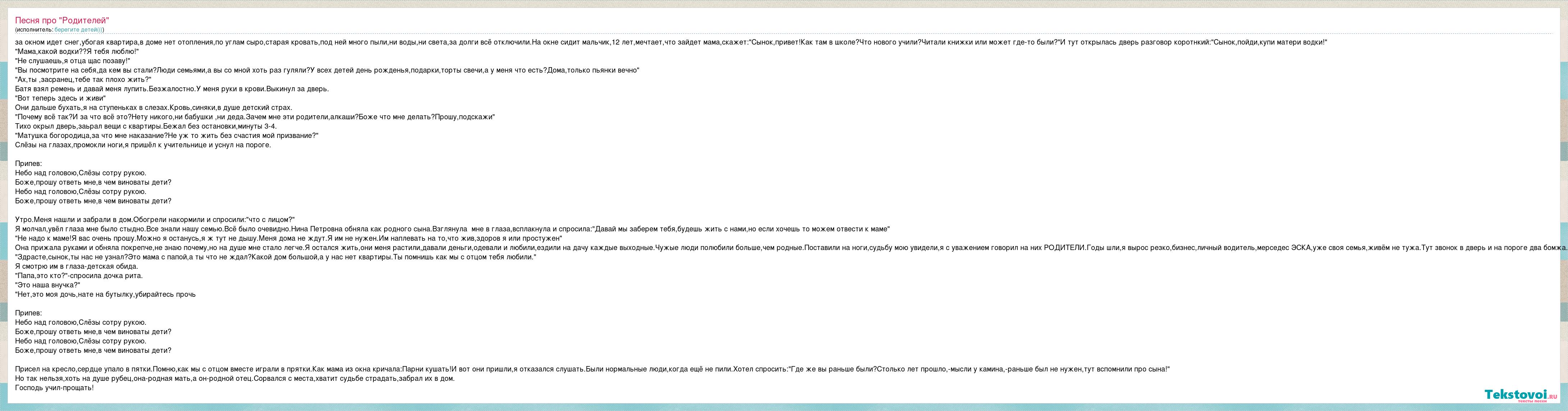 А как ты думаешь, о чем песня "Песня про "Родителей"" ?