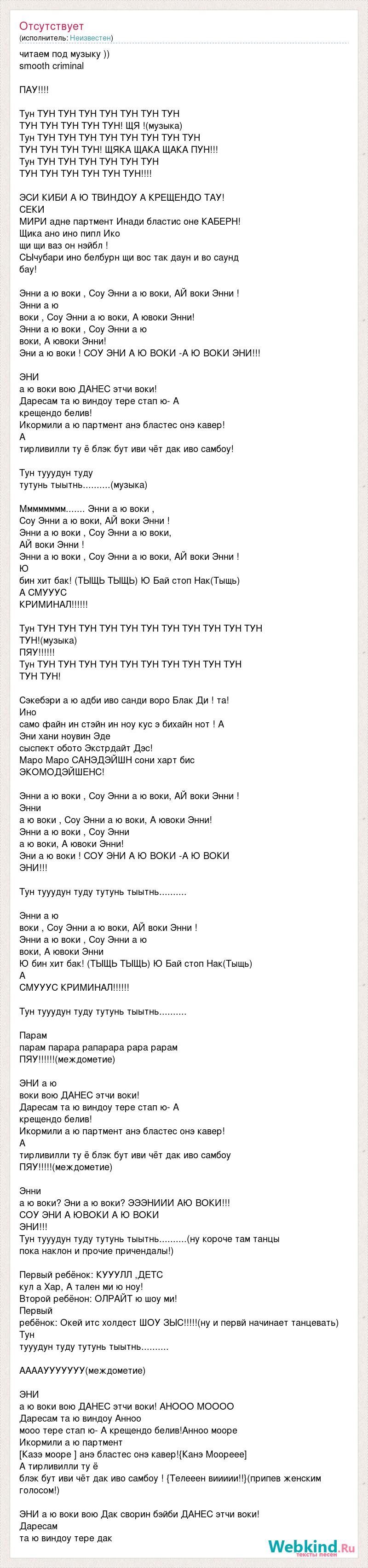 Эни а ю воки ! СОУ ЭНИ А Ю ВОКИ -А Ю ВОКИ