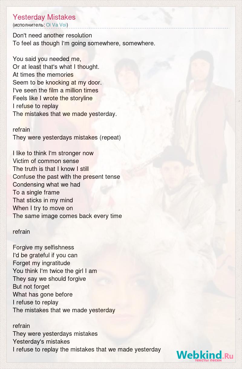 А как ты думаешь, о чем песня "Yesterday Mistakes" ?
