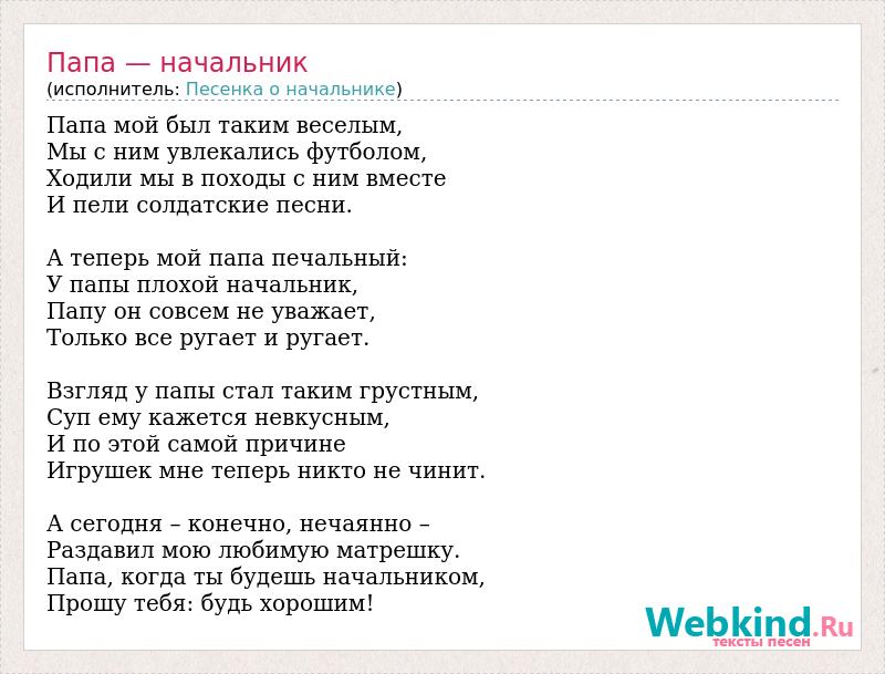 А как ты думаешь, о чем песня "Папа — начальник" ?