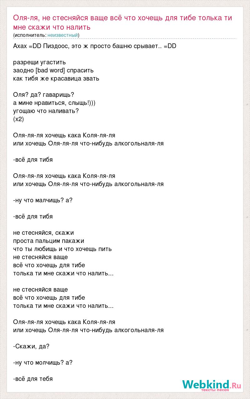 А как ты думаешь, о чем песня "Оля-ля, не стесняйся ваще всё что хочещь для тибе толька ти мне скажи чт" ?