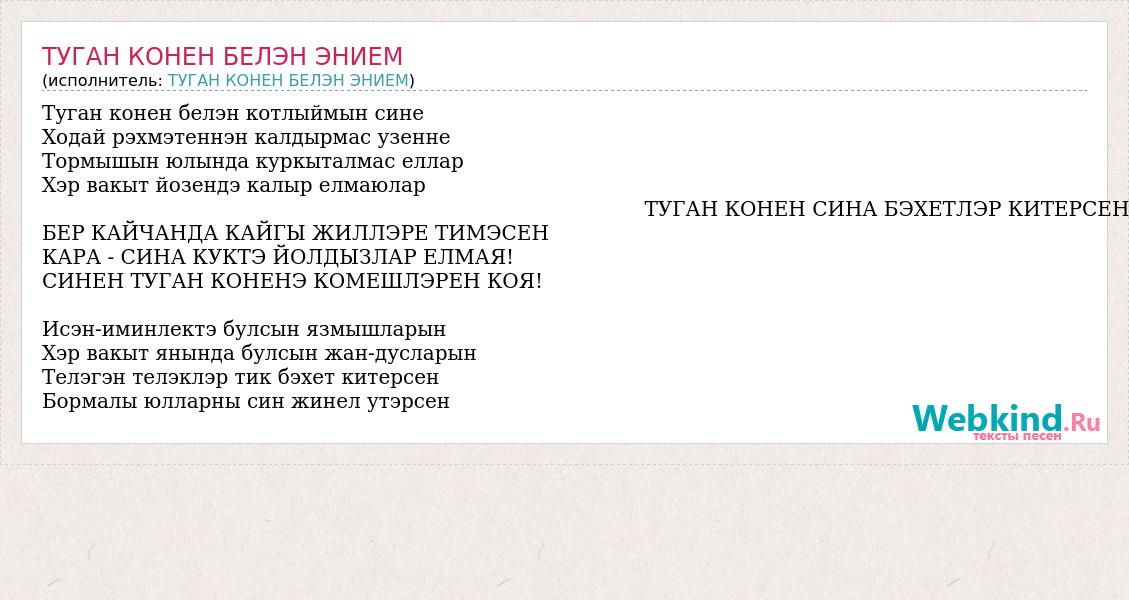 ТУГАН КОНЕН БЕЛЭН ЭНИЕМ