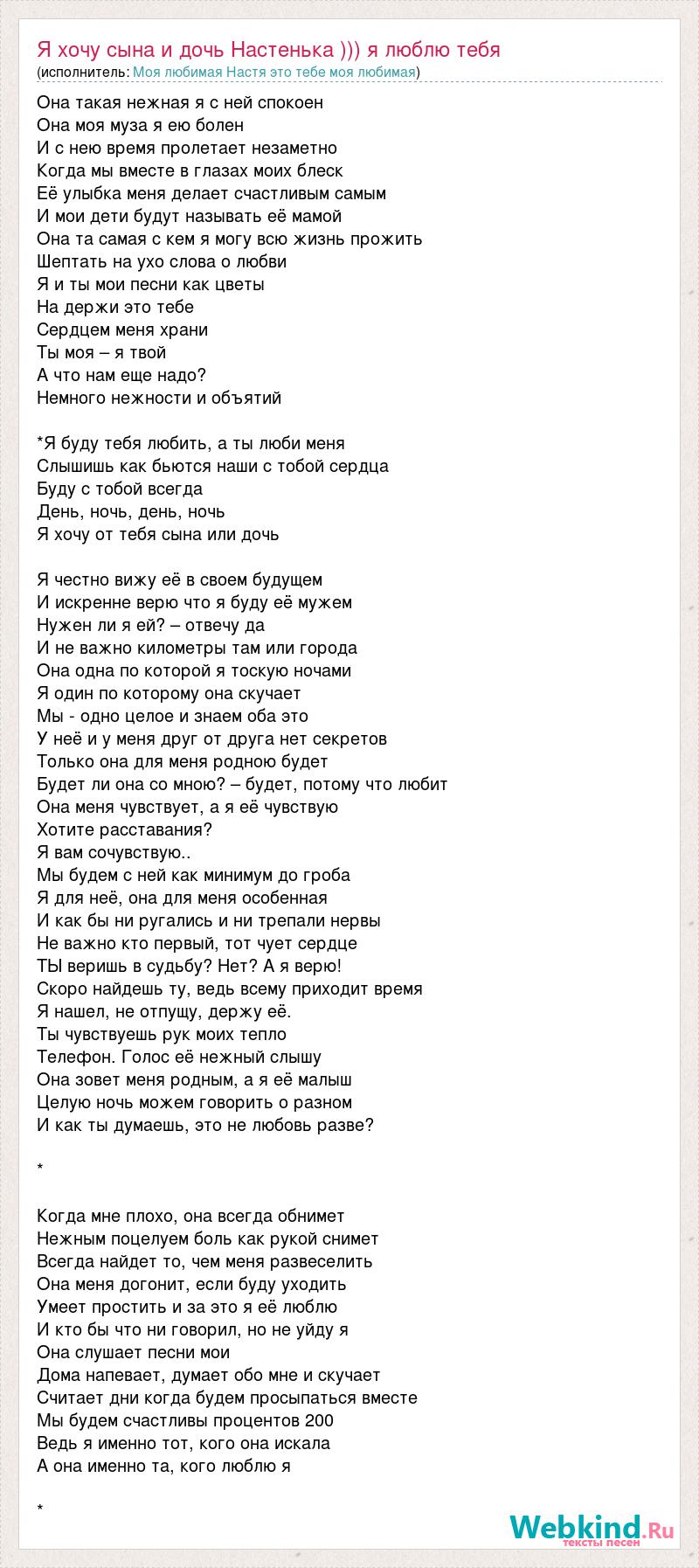 А как ты думаешь, о чем песня "Я хочу сына и дочь Настенька ))) я люблю тебя" ?