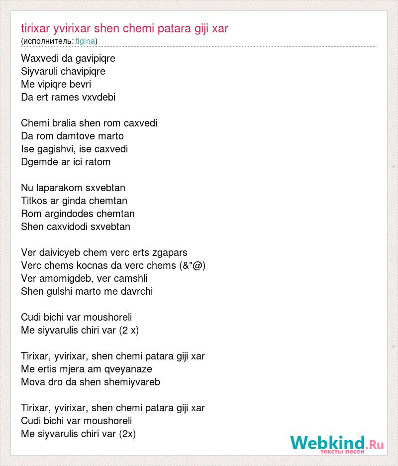 Tirixar yvirixar shen chemi patara giji xar