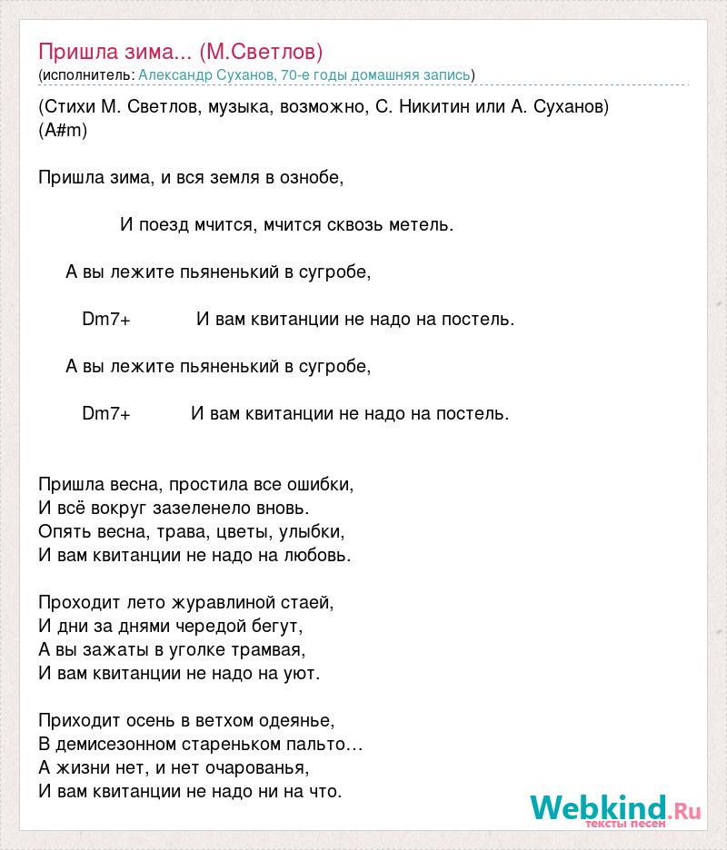 А как ты думаешь, о чем песня "Пришла зима... (М.Светлов)" ?