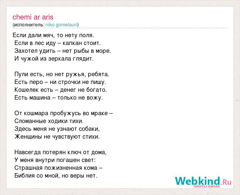 А как ты думаешь, о чем песня "Chemi ar aris" ?