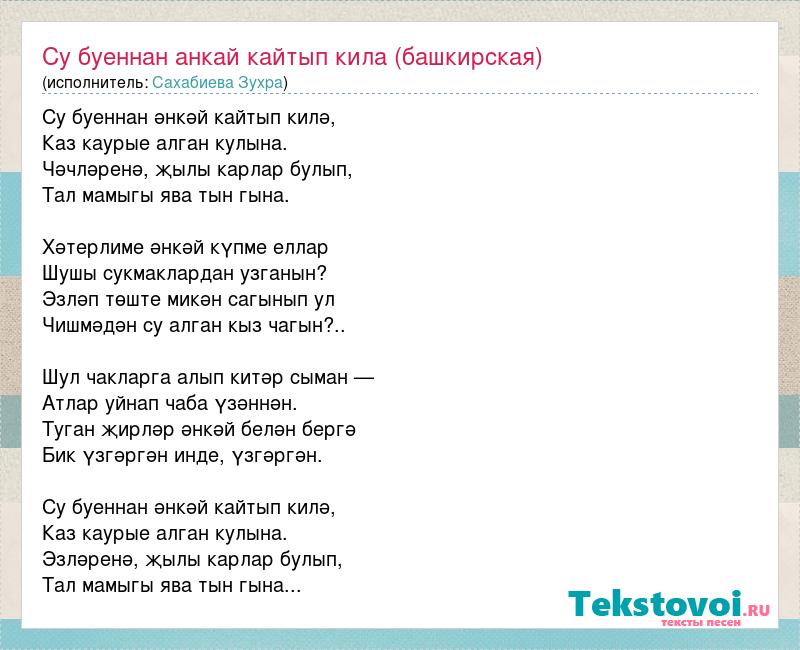 А как ты думаешь, о чем песня "Су буеннан анкай кайтып кила (башкирская)" ?