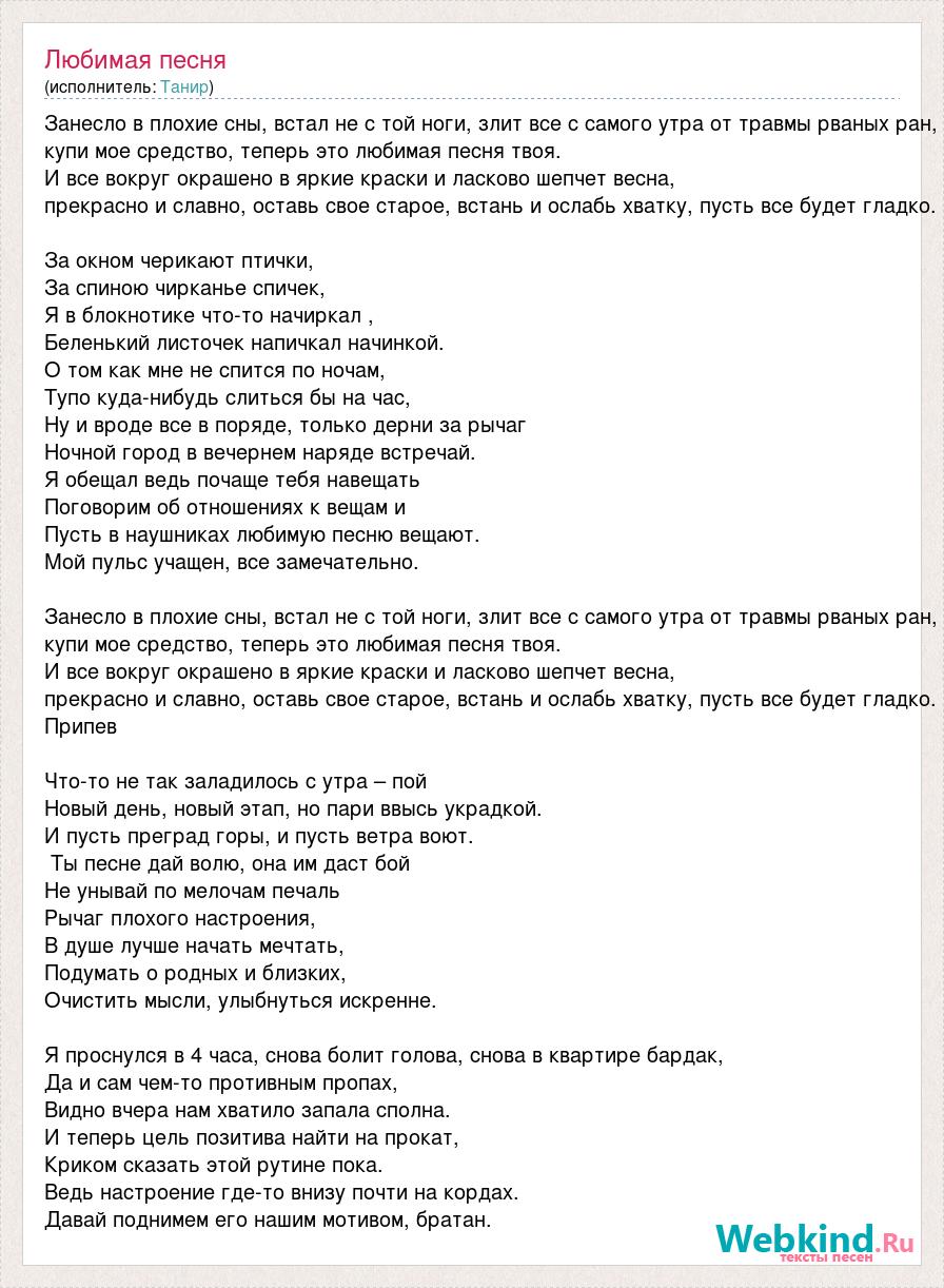 Занесло в плохие сны, встал не с той ноги, злит все с самого утра от травмы рваных ран, купи мое средство, теперь это любимая песня твоя. И все вокруг окрашено в яркие краски и ласково шепчет весна, прекрасно и славно, оставь свое старое, встань и ослабь хватку, пусть все будет гладко. За окном черикают птички, За спиною чирканье спичек, Я в блокнотике что-то начиркал , Беленький листочек напичкал начинкой. О том как мне не спится по ночам, Тупо куда-нибудь слиться бы на час, Ну и вроде все в поряде, только дерни за рычаг Ночной город в вечернем наряде встречай. Я обещал ведь почаще тебя навещать Поговорим об отношениях к вещам и Пусть в наушниках любимую песню вещают. Мой пульс учащен, все замечательно. Занесло в плохие сны, встал не с той ноги, злит все с самого утра от травмы рваных ран, купи мое средство, теперь это любимая песня твоя. И все вокруг окрашено в яркие краски и ласково шепчет весна, прекрасно и славно, оставь свое старое, встань и ослабь хватку, пусть все будет гладко. Припев Что-то не так заладилось с утра – пой Новый день, новый этап, но пари ввысь украдкой. И пусть преград горы, и пусть ветра воют. Ты песне дай волю, она им даст бой Не унывай по мелочам печаль Рычаг плохого настроения, В душе лучше начать мечтать, Подумать о родных и близких, Очистить мысли, улыбнуться искренне. Я проснулся в 4 часа, снова болит голова, снова в квартире бардак, Да и сам чем-то противным пропах, Видно вчера нам хватило запала сполна. И теперь цель позитива найти на прокат, Криком сказать этой рутине пока. Ведь настроение где-то внизу почти на кордах. Давай поднимем его нашим мотивом, братан.