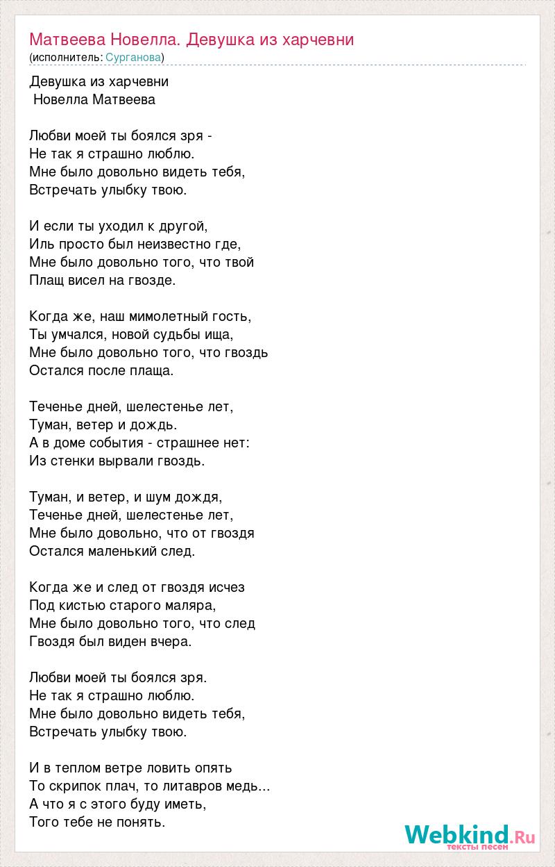 А как ты думаешь, о чем песня "Матвеева Новелла. Девушка из харчевни" ?