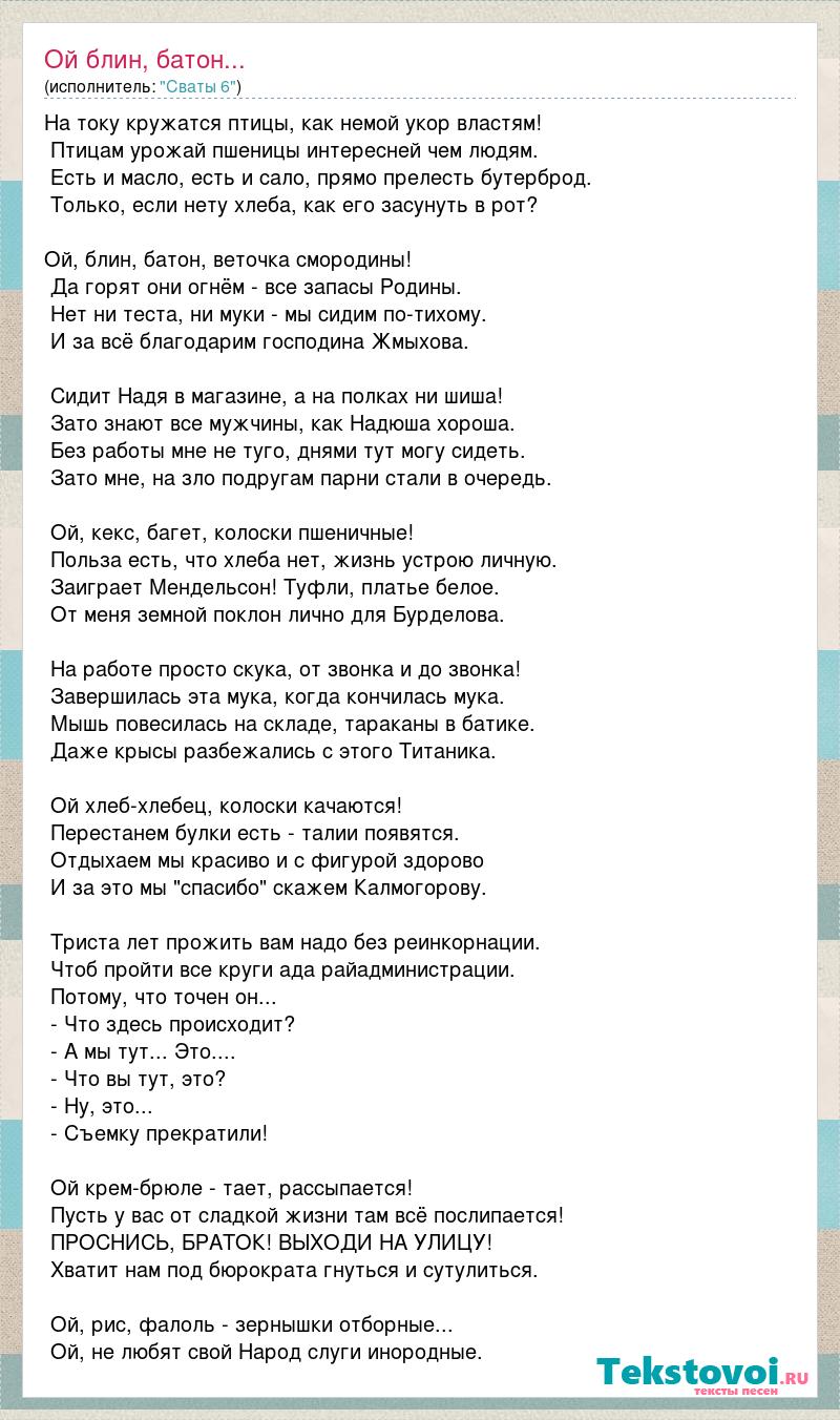 А как ты думаешь, о чем песня "Ой блин, батон..." ?