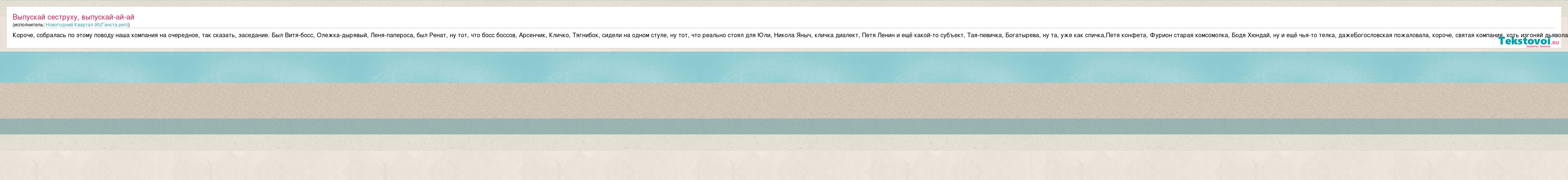 А как ты думаешь, о чем песня "Выпускай сеструху, выпускай-ай-ай" ?
