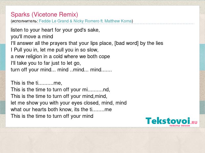 А как ты думаешь, о чем песня "Sparks (Vicetone Remix)" ?