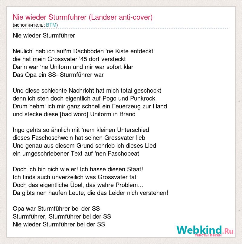 А как ты думаешь, о чем песня "Nie wieder Sturmfuhrer (Landser anti-cover)" ?