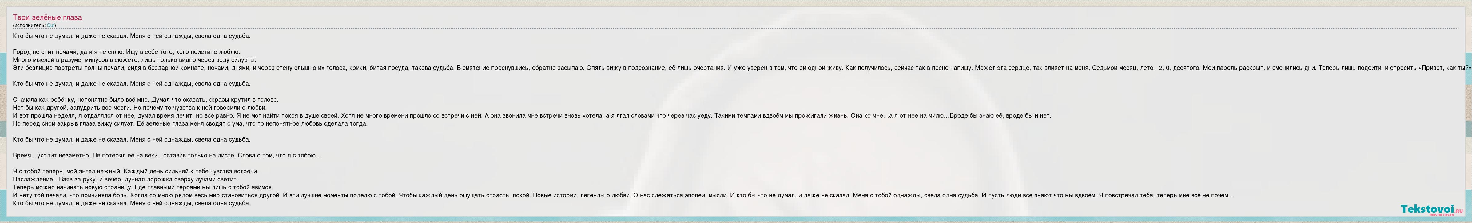 А как ты думаешь, о чем песня "Твои зелёные глаза" ?