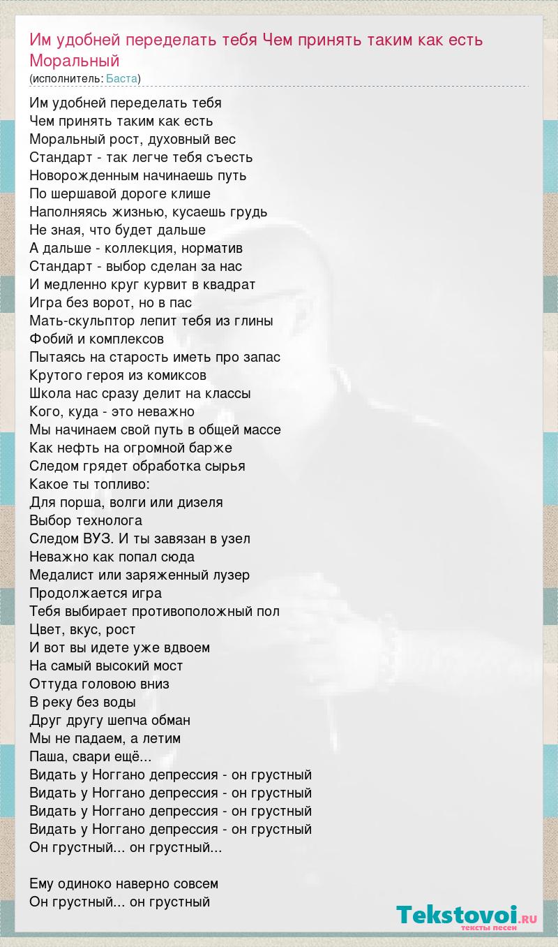 А как ты думаешь, о чем песня "Им удобней переделать тебя Чем принять таким как есть Моральный рост, д" ?