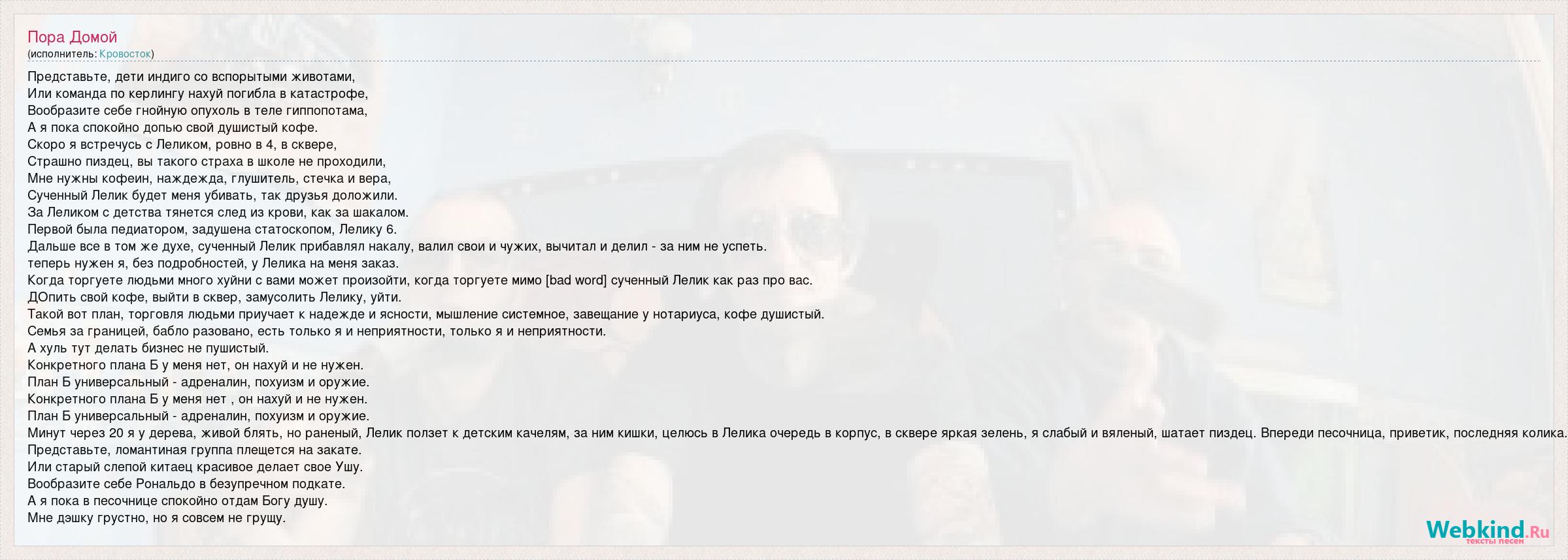 А как ты думаешь, о чем песня "Пора Домой" ?