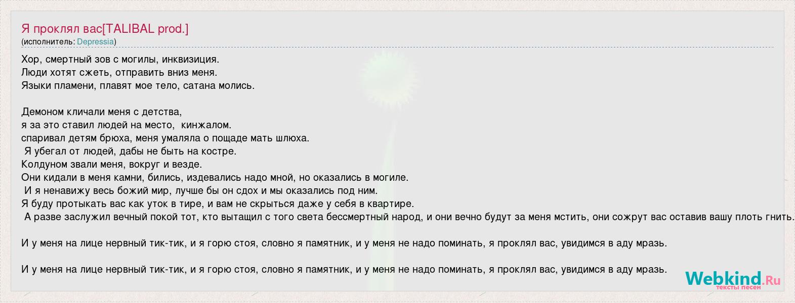 А как ты думаешь, о чем песня "Я проклял вас[TALIBAL prod.]" ?