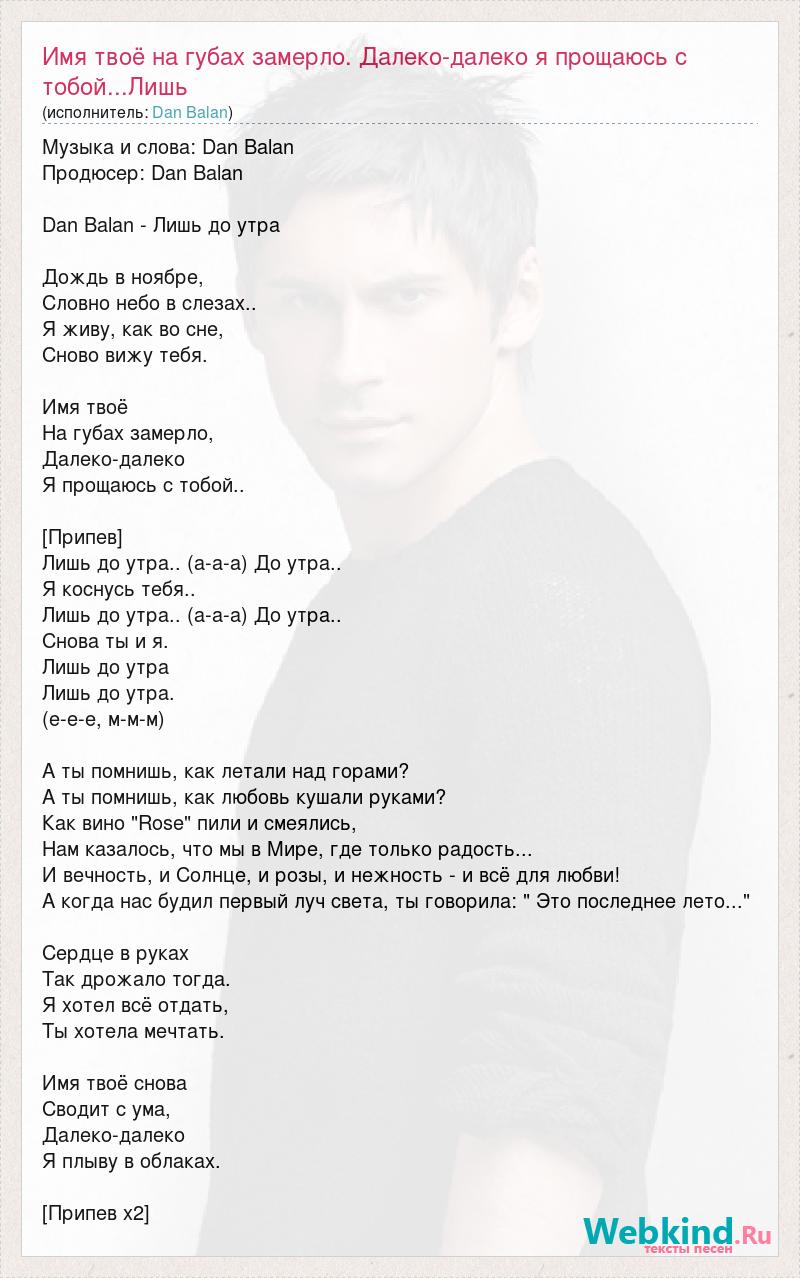 Главная→Исполнители→Dan Balan→Имя твоё на губах замерло. Далеко-далеко я прощаюсь с тобой...Лишь до утра