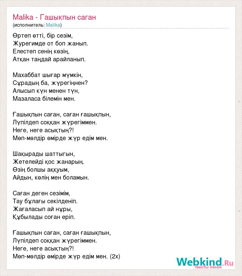 А как ты думаешь, о чем песня "Malika - Гашыкпын саган" ?