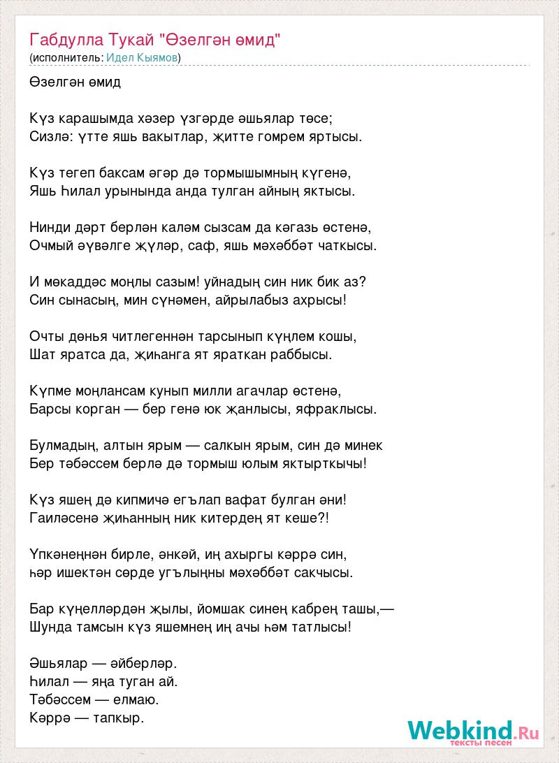 А как ты думаешь, о чем песня "Габдулла Тукай "Өзелгән өмид"" ?