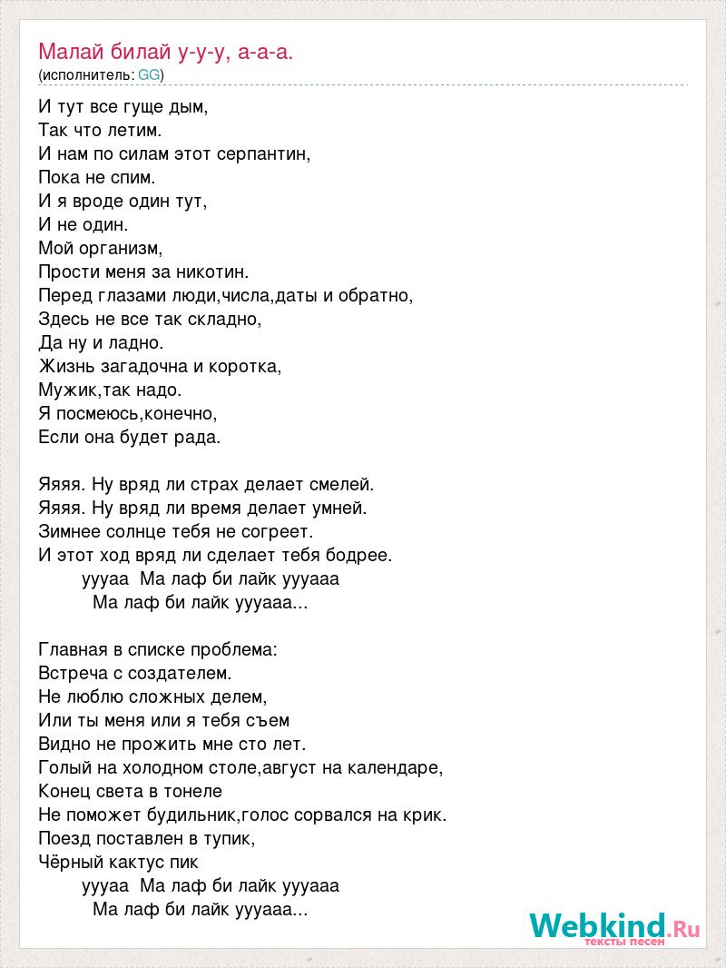 Малай билай у-у-у, а-а-а.