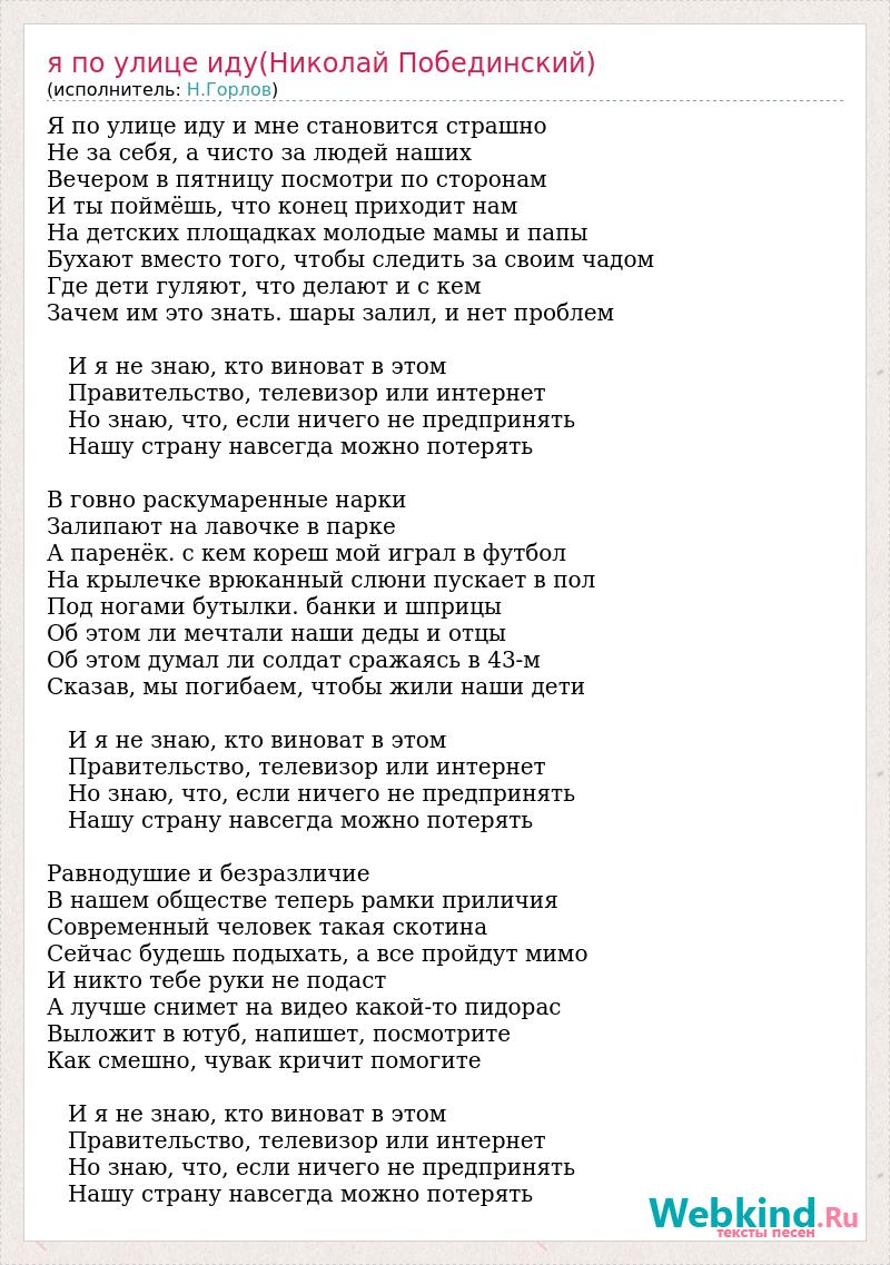 А как ты думаешь, о чем песня "Я по улице иду(Николай Побединский)" ?