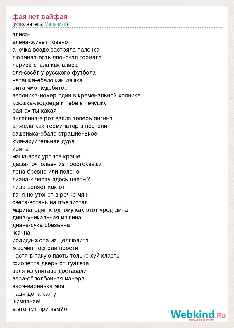 А как ты думаешь, о чем песня "Фая нет вайфая" ?