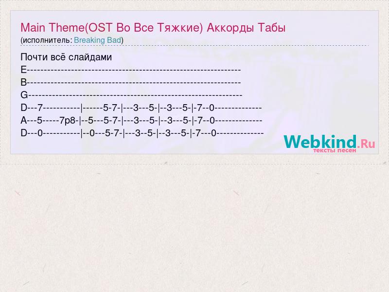 Main Theme(OST Во Все Тяжкие) Аккорды Табы