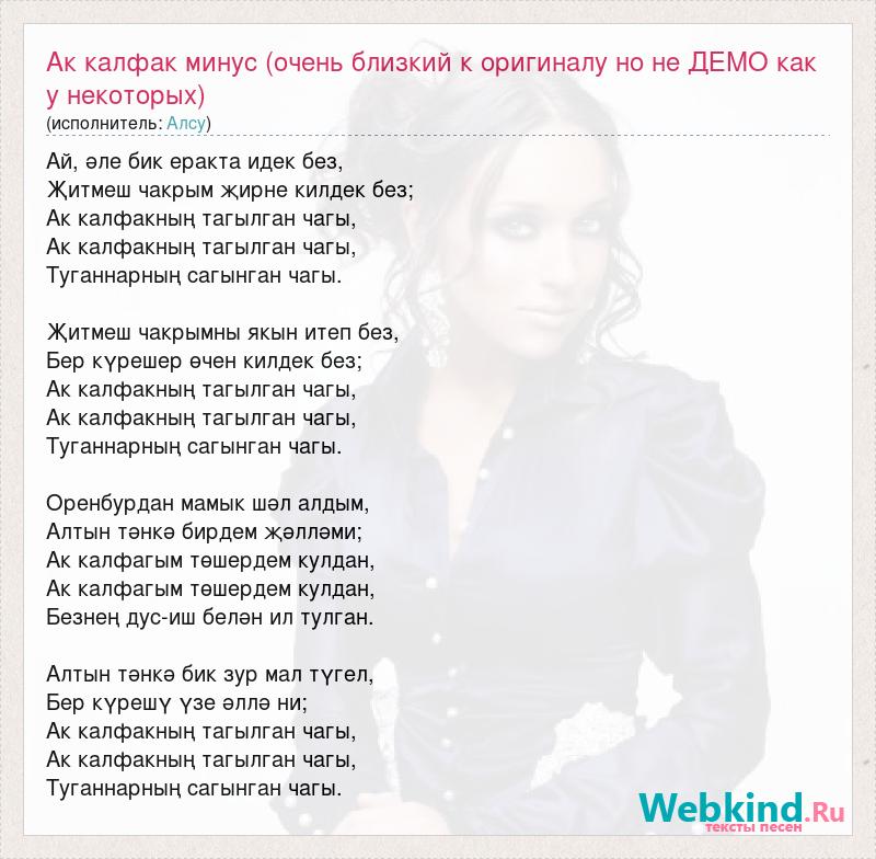 А как ты думаешь, о чем песня "Ак калфак минус (очень близкий к оригиналу но не ДЕМО как у некоторых)" ?