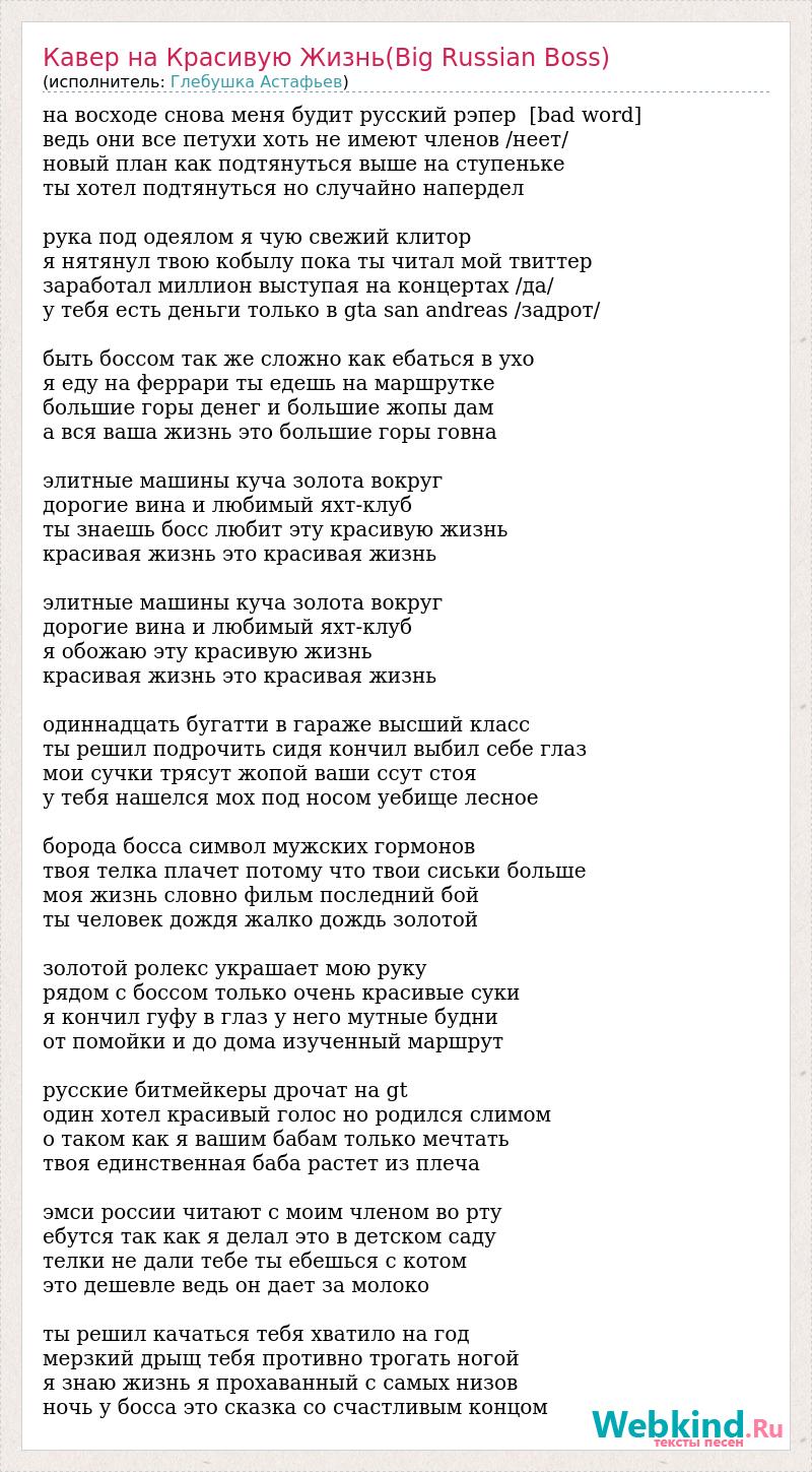 А как ты думаешь, о чем песня "Кавер на Красивую Жизнь(Big Russian Boss)" ?